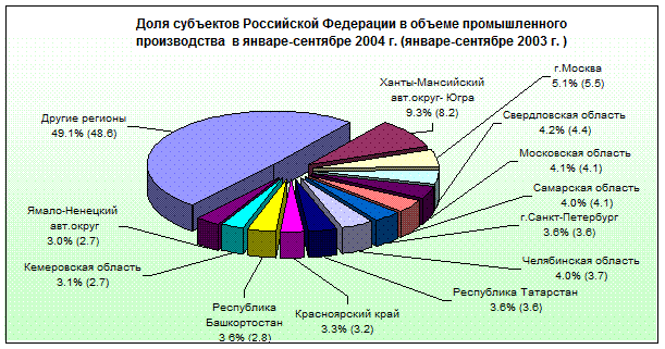 Более половины суммарного ВРП России дают три экономических района (Центральный, Уральский, Западно-Сибирский); при этом за период 1994 — 1999 гг. их доля увеличилась на 3 процентных пункта (п.п.) и достигла в 1997 г. 53%. Присоединение к ним четвертого по экономической мощи района — Поволжского — увеличивает их долю почти до 2/3 суммарного ВРП (62,9% в 1999 г.). Среди отдельных экономических районов за наблюдаемый период наиболее заметно увеличивалась доля Центрального района (на 4 п.п.); более чем на 1 п.п. уменьшилась доля Северного экономического района. Изменения относительного веса других районов были менее значительными.