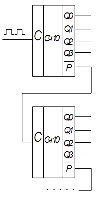 Пусть сигнал предел (Р) формируется тогда, когда поступает одиннадцатый импульс на входе.