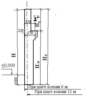 5.2.2. Распространенные типовые железобетонные колонны имеют прямоугольное и двухветвевое сечение. Крайняя колонна для одноэтажных зданий с мостовым краном приведена на рис. 3. При этом высота колонны (здания) равна расстоянию от нулевой отметки до верха колонны, а длина колонны – высоте, увеличенной на длину части колонны, погружаемой в фундамент.