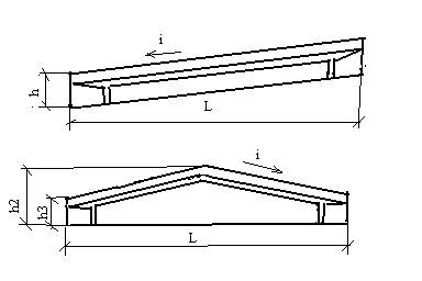 Рис. 4. Односкатная и двускатная ж/б балки с тавровым сечением