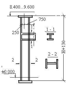 Сплошные колонны (рис. 8) имеют прокатное или сварное двутавровое сечение стержня и применяются при высоте колонн не более 9,6 м, в зданиях с пролетами до 24 м, при грузоподъемности мостового крана не более 20 т и шаге колонн 6, 12 м. Привязка крайних колонн к разбивочным осям – 250 мм. Маркировка колонн представлена кодом КvHw-N,