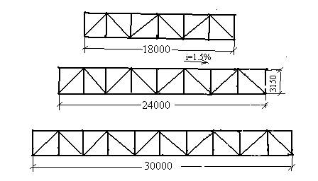 5.3.3. Типовые металлические фермы с пролетами 18, 24, 30 и 36 м представлены (рис. 10) однотипными стержневыми конструкциями с горизонтальными поясами (незначительный уклон верхнего пояса).
