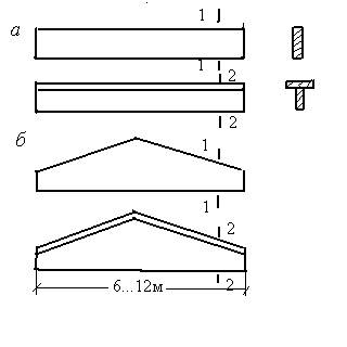 Рис. 12. Деревянные ригельные клееные балки: а – односкатные, б – двускатные