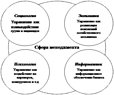 Рис. 2.1. Взаимодействие менеджмента с другими науками, используемыми для осуществления процессов управления.