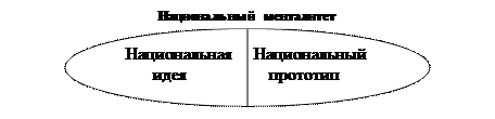 Итак, если подвести итог, в основе менталитета лежат образы, знания и верования, сливающиеся в представления о мире или «национальную (этническую) картину мира», которые вкупе с доминирующими потребностями и архетипами создают иерархию ценностей, идеалов, эталонов, «кодексы поведения». Попытаемся выделить эти идеалы, эталоны. Менталитет как компонент психического склада нации должен нести в своей структуре наиболее яркие и показательные, интегральные структурные элементы. В этих компонентах должны отразиться устремления всей или, по крайне мере, большинства членов нации. Существует модель национального менталитета, согласно которой менталитет раскрывается в двух взаимосвязанных структурных элементах: национальная идея, национальный прототип (рис. 10.2).