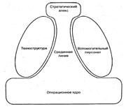 3. Серединная линия - Те менеджеры, которые управляют не только операционным ядром но и другими менеджерами. Все среднее звено управления.