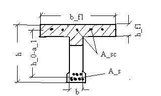 Рис. 16. Расчетная схема ж/б изгибаемого элемента с тавровым сечением и арматурой в сжатой зоне