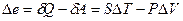 где первый член соответствует передаче теплоты Q, а второй член – работе (- dA).