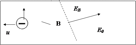 В результате у электронов появляется составляющая скорости, направленная к верхней (на рисунке) грани пластинки. У этой грани образуется избыток отрицательных, соответственно у нижней грани – избыток положительных зарядов. Следовательно, возникает дополнительное поперечное электрическое поле ЕB. Тогда напряженность этого поля достигает такого значения, что его действие на заряды будет уравновешивать силу (15.5), установится стационарное распределение зарядов в поперечном направлении. Соответствующее значение EB определяется условием: eEB=euB. Отсюда: