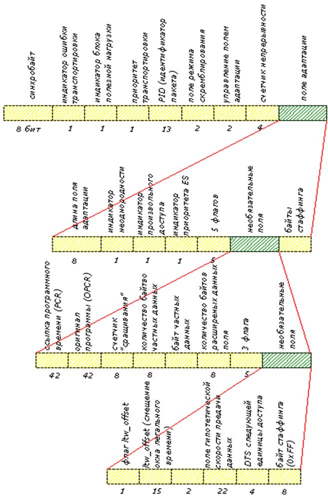 Рисунок 8.9 – структура заголовка и поля адаптации транспортного пакета