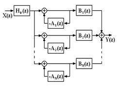Параллельная форма. Функция H(z) разлагается на элементарные дроби: