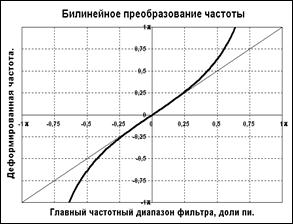 Выражение (6.3.6) позволяет осуществлять переход от фактических частот w главного частотного диапазона, которым должен соответствовать оператор РЦФ, к деформированным частотам wд комплексной p-плоскости, на которой можно задавать требуемую форму передаточной функции проектируемого фильтра, при этом аппроксимация передаточных функций, учитывая область существования w от -¥ до ¥, может производиться многочленами и рациональными функциями. Связь частот приведена на рис. 6.3.2 (в начальной части