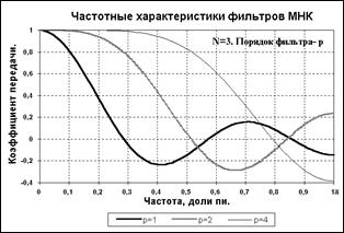 Совместное изменение этих параметров позволяет подбирать для сглаживания данных такой фильтр МНК, частотная характеристика которого наилучшим образом удовлетворяет частотному спектру сигналов при минимальном количестве коэффициентов фильтра.