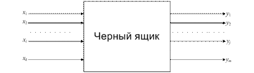 Для описания объекта исследования удобно пользоваться представлением о кибернетической системе. Иногда такую кибернетическую систему называют «черным ящиком». Стрелки справа изображают численные характеристики целей исследования. Мы обозначаем их буквой игрек и называем параметрами оптимизации. В литературе можно встретить другие названии: критерий оптимизации, целевая функция, выход «черного ящика» и т.д.