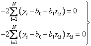 Минимум некоторой функции, если он существует, достигается при одновременном равенстве нулю частных производных по всей неизвестным, т. е.