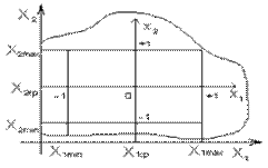 Эта операция заключается в выборе нового масштаба для кодированных факторов (рисунок 5), причем такого, чтобы минимальное значение кодированных факторов соответствовало “-1”, а максимальное значение “+1”, а также в переносе начала координат в точку с координатами Х1ср, Х2ср, …, Хnср