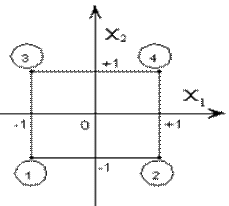 Если фактор изменяется дискретно, например он является качественным, то каждому уровню этого кодированного фактора присваиваются числа в диапазоне от +1 до –1. Так при двух уровнях это +1 и –1, при трех уровнях +1, 0, -1 и т.д.