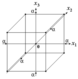 В общем случае ортогональный центрально-композиционный план при трех (n) факторов имеет следующий вид