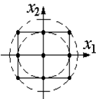 где V и W – текущие номера точек плана в двух подмножествах опытов N 0 и n 0 из их общего количества N, относящихся к двум разным концентрическим сферам. Одна из сфер может быть вырожденной, когда R 2=0. Рассмотренный ранее ортогональный центрально-композиционный план второго порядка (ОЦКП) не является рототабельным планом, так как его точки лежат на трех концентрических окружностях (сферах, гиперсферах). При n =2 это очевидно из рисунка 14. “Звездные” точки плана и точки плана ПФЭ 2n лежат на разных окружностях.