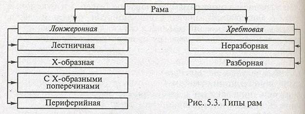 На автомобилях применяются рамы различных типов (рис. 5.3). Наибольшее распространение получили лонжеронные рамы.