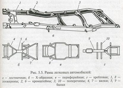 На рис. 5.5 представлены схемы рам легковых автомобилей.