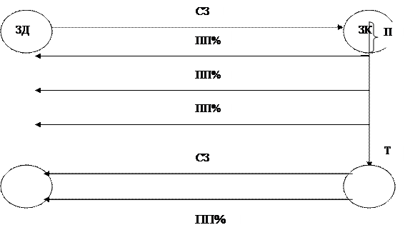 Б) стрелки вверх – платежи займодавца равны сумме займа