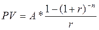 Зависимость параметров по методу депозитной книжки определяется с использованием дисконтирующего множителя FM4(n, r), где СЗ=PV, а ПП=A. отсюда следует: