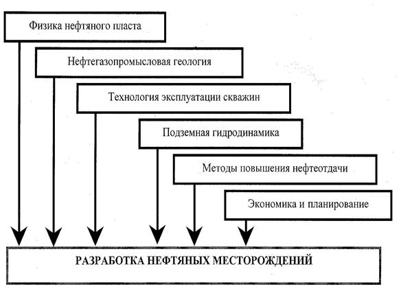 Вместе с тем разработка нефтяных месторождений — это не конгломерат геологии, подземной гидромеханики, технологии добычи нефти и экономики, а самостоятельная комплексная область науки и инженерная дисциплина, имеющая свои специальные разделы, связанные с учением о системах и технологиях разработки месторождений, планированием и реализацией основного принципа разработки, проектированием и регулированием разработки месторождений.
