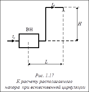 В системах, разделенных на зоны по высоте, в верхних зонах разрешается предусматривать естественную циркуляцию. В системах с естественной циркуляцией располагаемый напор для организации циркуляции может быть определен по формулами Хлудова (см. рис.1.17).