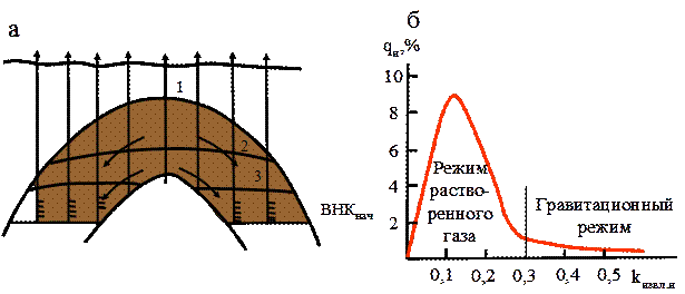 Этот режим практического значения в процессах нефтедобычи по существу не имеет и важен только для понимания процессов, происходящих в нефтяных залежах при их разработке.