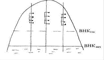 Массивная залежь с большим этажом нефтеносности разрабатывается обычно скважинами, в которых осуществляется последовательный перенос интервалов перфорации при разработке. Сначала в скважине перфорируют интервал толщиной 20-40 м в нижней части залежи, удаленный от начального ВНК на 10-15 м. Эксплуатация скважин л продолжается до ее обводнения в результате подъема ВПК. После этого обводненный интервал изолируют и перфорируют следующий вышележащий интервал с некоторым отступлением от текущего ВНК. Количество переносов интервалов перфорации в каждой скважине зависит от высоты залежи, положения скважины на структуре, характера и степени неоднородности продуктивного разреза.
