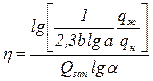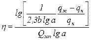 В характеристиках вытеснения Максимова и Сазонова величина lga = tga - угловому коэффициенту прямой в системе координат Qн и lgQe или l gQж. Эта величина называется показателем эффективности процесса вытеснения, lgb - отрезок, отсекаемый на оси абсцисс.