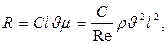 В этом случае сила R должна зависеть от скорости u, линейного размера тела l и динамической вязкости m. Эта формула в соответствии с формулой (1.3) должна иметь вид