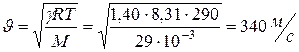Вычислим значение скорости звука в воздухе при температуре 290 К (комнатная температура). Для воздуха