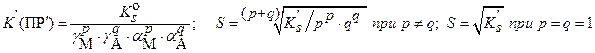 В заключение следует напомнить соотношение между термодинамическим, концентрационными (реальным и условным) произведениями растворимости [ термодинамической, концентрационными (реальной и условной) константами растворимости ]