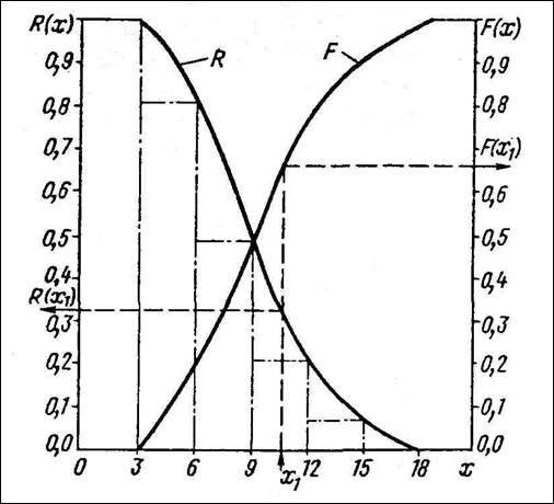 Вероятность отказа F(x) есть событие, противоположное вероятности безотказной работы: