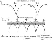 Каждый энергетический уровень изолированного атома в кристалле расщепляется в зону.
