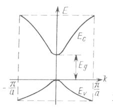 . На рис.1.3 для двух смежных зон представлены простейшие зависимости E (k), характерные для кубического кристалла. Вблизи экстремумов мы получаем параболическое изменение энергии.
