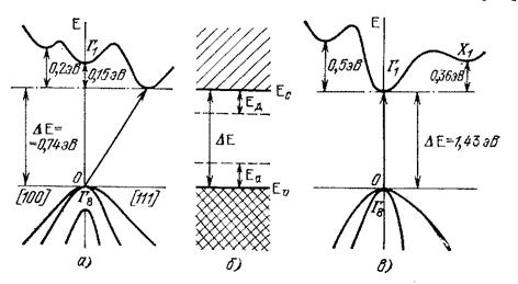 В зависимости от положения экстремумов энергетических зон различают прямозонные и непрямозонные полупроводники (рис. 1.4).