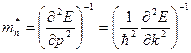 Вторая производная характеризует степень крутизны зависимости E(k), чем круче эта зависимость, тем меньше масса электрона. Эффективная масса электрона в кристалле зависит от его энергии и является характеристикой материала.