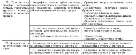 | 23. Ходовая система гусеничных тракторов | I — параметры и качественные признаки, приведенные в пункте 24 (группа I) | Параметры и качественные признаки, приведенные в пункте 24 (группа I) |