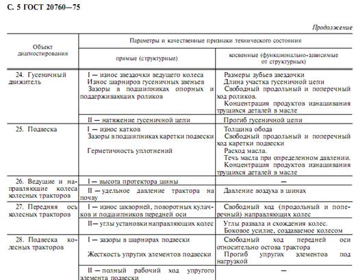 Таблица 1 — Параметры и качественные признаки технического состояния шасси тракторов