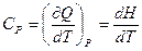 Теплоёмкость изобарического процесса может быть выражена через энтальпию: