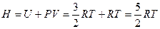 Энтальпия идеального газа зависит только от температуры. Для одного моля одноатомного газа энтальпия равна: