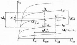 | Рис. 6.36. Линеаризация входных и выходных ВАХ в схеме с ОЭ |