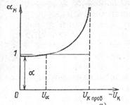 увеличиваются, поэтому с увеличением Uк значение α растет. При больших напряжениях электроны и дырки, пересекающие ОПЗ коллекторного перехода, могут вызывать ударную ионизацию, в результате ток коллектора увеличивается.