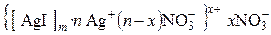2). Коагулирующее действие оказывает ион, заряд которого противоположен заряду коллоидной частицы. Например, для положительно заряженного золя AgI