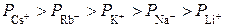4). Коагулирующая способность катионов и анионов одинаковой зарядности возрастает по мере увеличения радиуса иона, т.к. в этом случае уменьшается гидратная оболочка и гидратированный ион сильнее притягивается к заряженной поверхности. Например для катионов щелочных металлов получен следующий ряд: