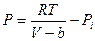 . Для перехода к уравнению состояния реального газа нужно учесть силы отталкивания, а, следовательно, собственный объём молекул. Для этого вводится поправка на молярный объём (или силы отталкивания) b. В СИ b измеряется в