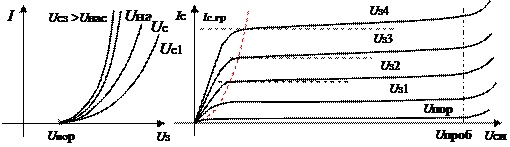 В области 4 наступают предпробойные явления, сопровождающиеся резким увеличением тока Ic. Область пробоя определяет выбор предельно допустимых напряжений.